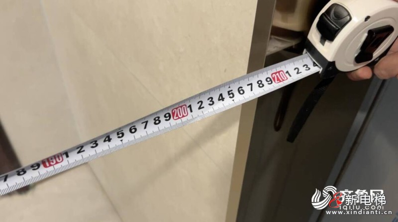 观海地小区1号楼共有两部电梯,东侧电梯一梯两户,西侧一梯一户。在一楼以上的楼层,两部电梯以室外连廊相连。王女士和业主们用卷尺实地测量了一下,东侧电梯候梯厅最短边宽度仅有1.5米,西侧电梯约为2.1米。细心的业主发现,这个宽度远不符合2018年国家住房和城乡建设部局部修订的《建筑设计防火规范》,存在消防安全隐患。