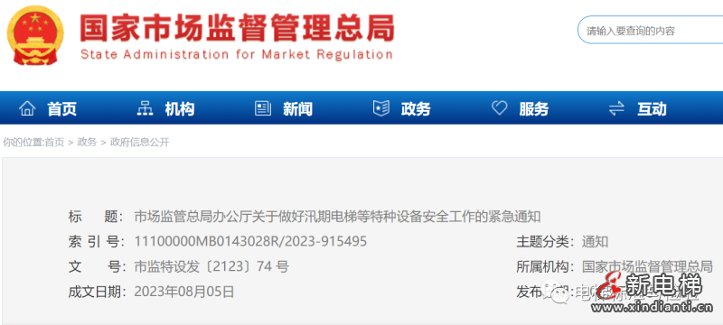 2023.08.08 | 行业资讯紧急通知!总局发文:事关汛期电梯等特种设备安全工作