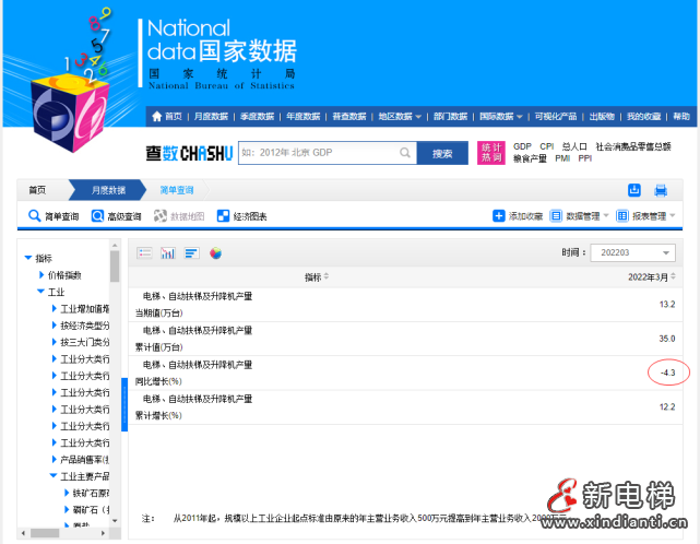 2022.05.10 | 行业资讯国家统计局数据:3月电扶梯及升降机产量同比下跌4.